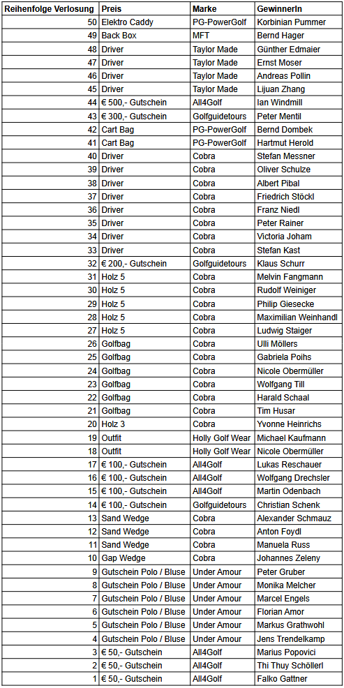 Finalturnier 2025: Das Finalturnier der Saison 2024/2025 (Deutschlandwertung!) findet am Samstag, den 27. September 2025 auf dem Golfplatz des Golfclub Altötting-Burghausen statt.