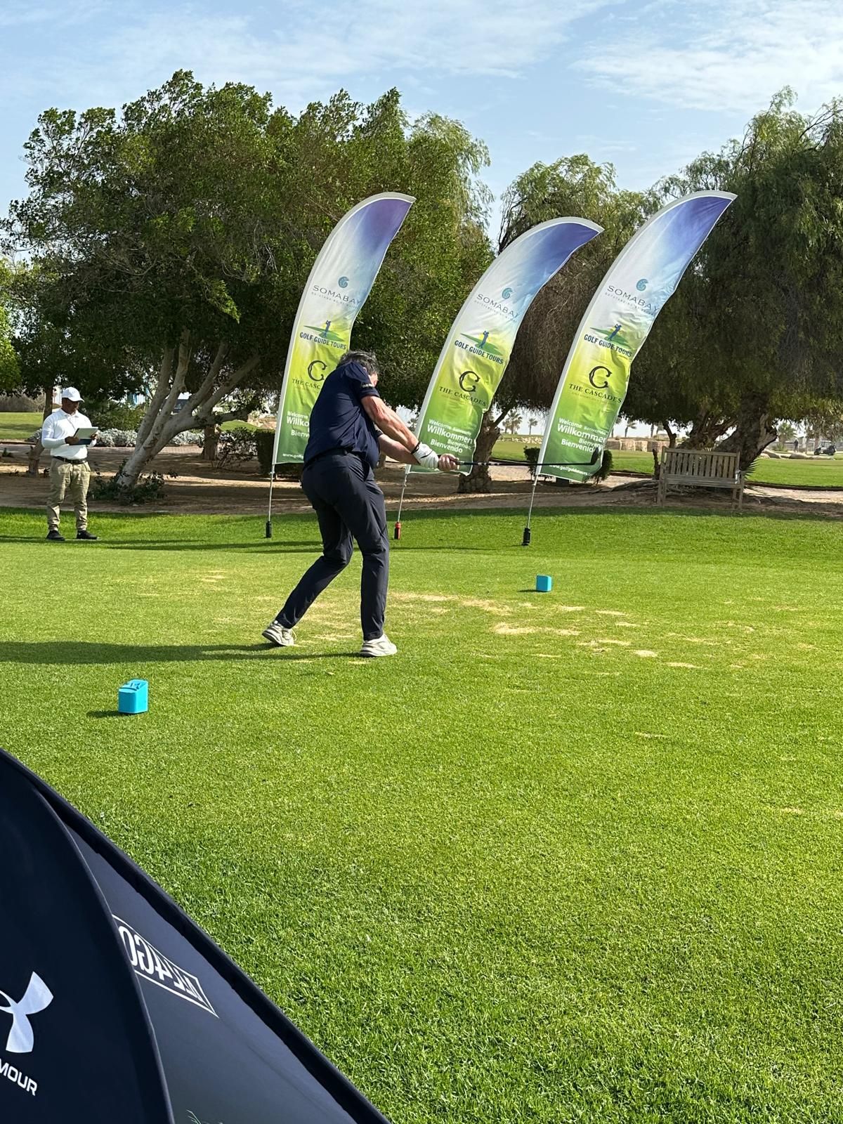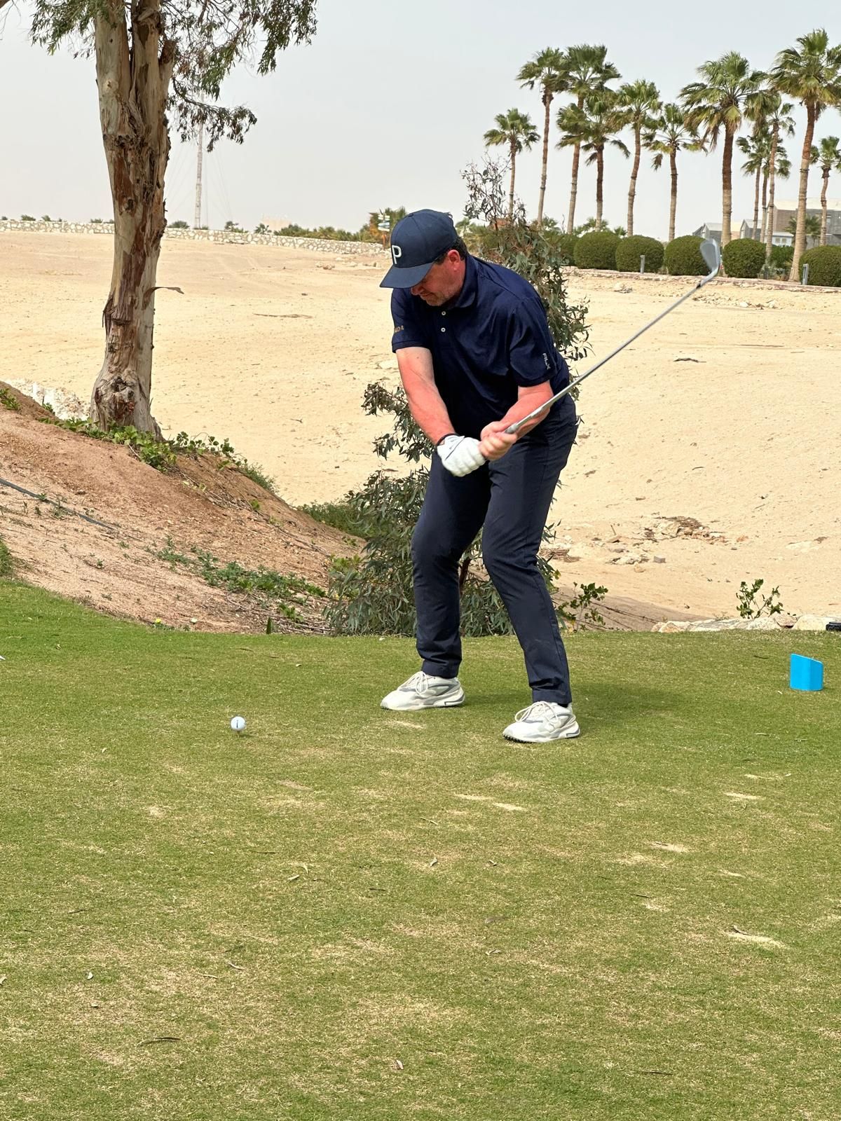 - Ein Par 3 Challenge Course mit 1.130 Meter. Nichts Flaches wie man das so oft hat, sondern ein enorm schweres Layout mit Hügeln, Bachläufen, Brücken, Teich, erhöhte Grüns tiefere Grüns, Waste und Büsche. Alles flankiert von Sandhügel, wie in einer Arena. Nur wer hoch präzise spielt kommt mit einem Ball aus. Der Platz ist auch bei Flutlicht spielbar.